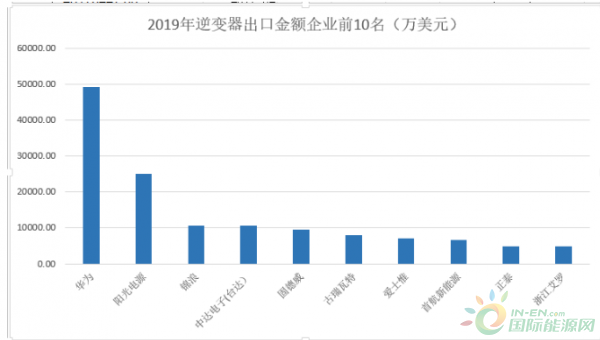 近日,2019年全年的海關(guān)數(shù)據(jù)已出爐,根據(jù)統(tǒng)計(jì),2019年全年,中國(guó)的逆變器出口量約為3155.47萬臺(tái),出口總金額達(dá)到了近29億美元(含光伏、風(fēng)電、汽車電源等),前20家光伏逆變器公司的出口金額超過了總出口額的50%,約為15.42億美元。其中華為、陽光,錦浪,臺(tái)達(dá),固德威位列2019年出口逆變器企業(yè)前五名。