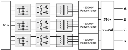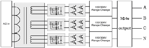 3 .獨(dú)立式三相交流電源,無輸出變壓器結(jié)構(gòu),輸入隔離,輸出未隔離結(jié)構(gòu)圖 : |