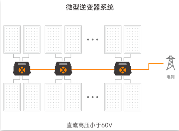 微型逆變器系統(tǒng)為全并聯(lián)電路設(shè)計(jì),組件之間不再有電壓疊加,直流電壓小于60V,從根本上解決了由于高壓直流拉弧引起火災(zāi)的風(fēng)險(xiǎn),消除了“直流拉弧風(fēng)險(xiǎn)”與“電擊風(fēng)險(xiǎn)”。
